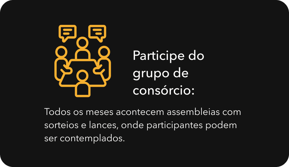 Você pode ser contemplado antes do prazo através de lances ou sorteios.